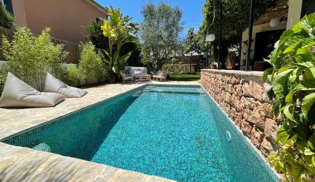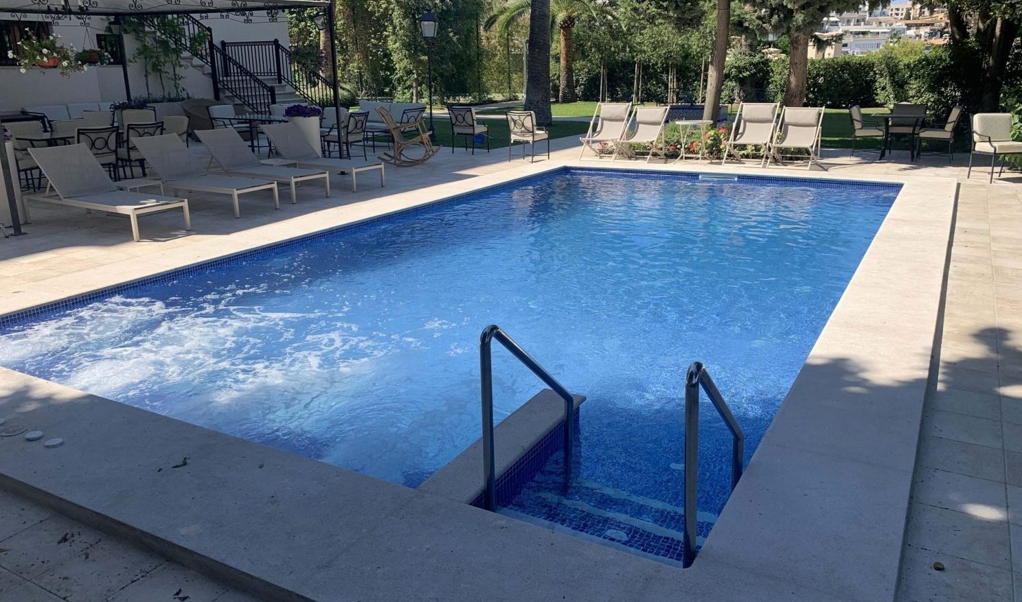 Esta piscina está totalmente rehabilitada y se ha modificado escalera y se ha construido una playa para tomar el sol.